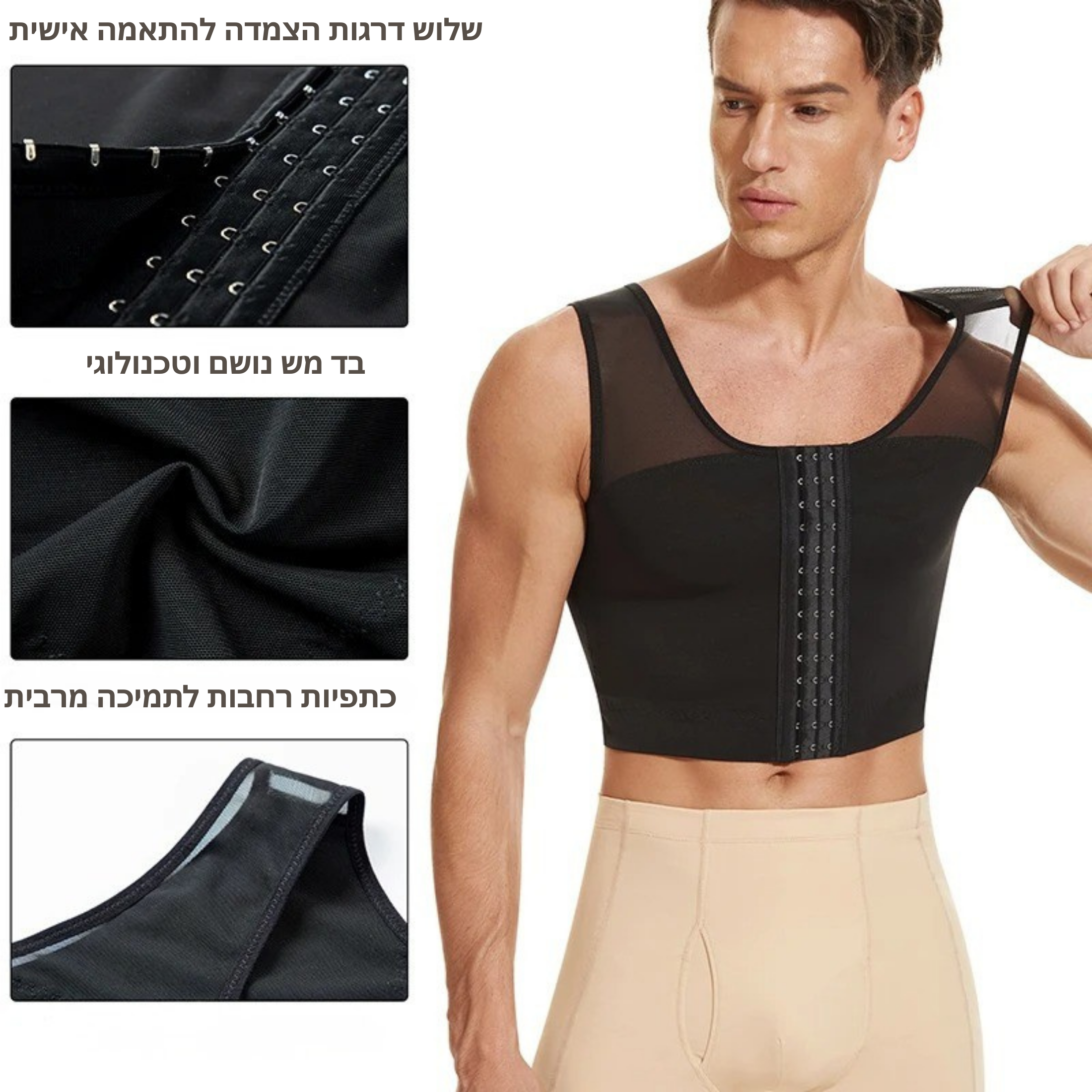 טכנולוגיית דחיסה מתקדמת המעצבת מחדש את קווי המתאר של החזה והבטן. התוצאה: סילואט אתלטי, הדוק ומרשים באופן מיידי מתחת לכל חליפה או חולצה