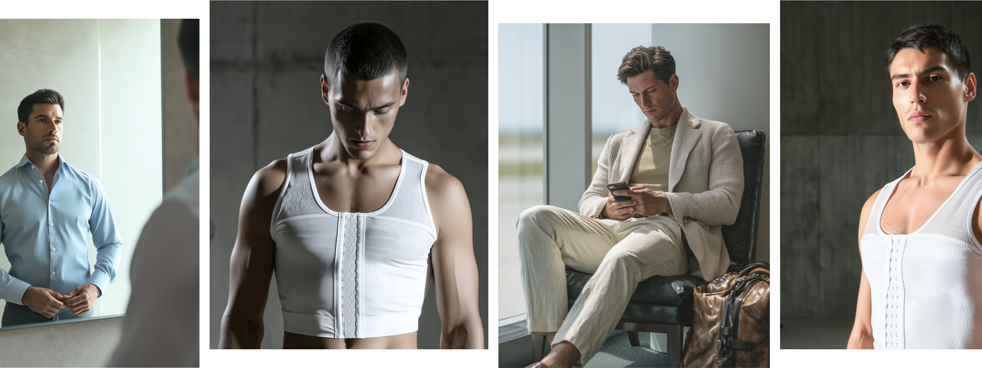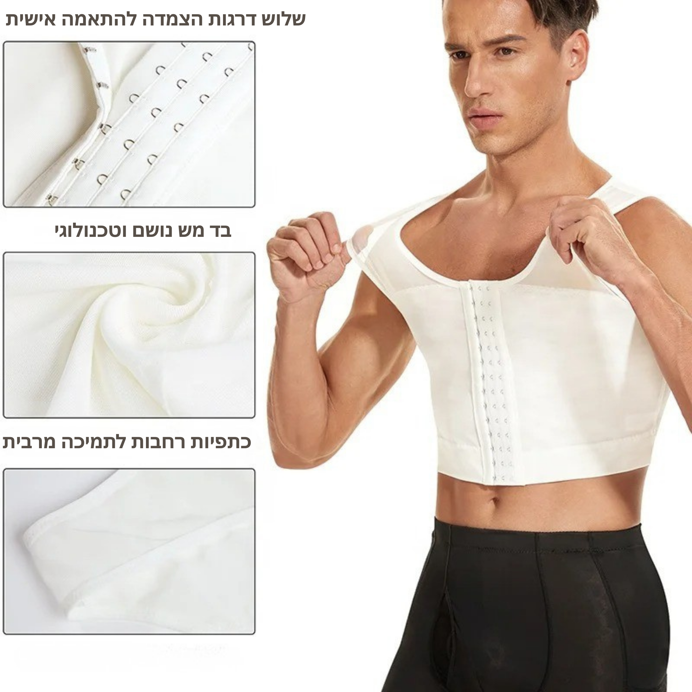 טכנולוגיית דחיסה מתקדמת המעצבת מחדש את קווי המתאר של החזה והבטן. התוצאה: סילואט אתלטי, הדוק ומרשים באופן מיידי מתחת לכל חליפה או חולצה